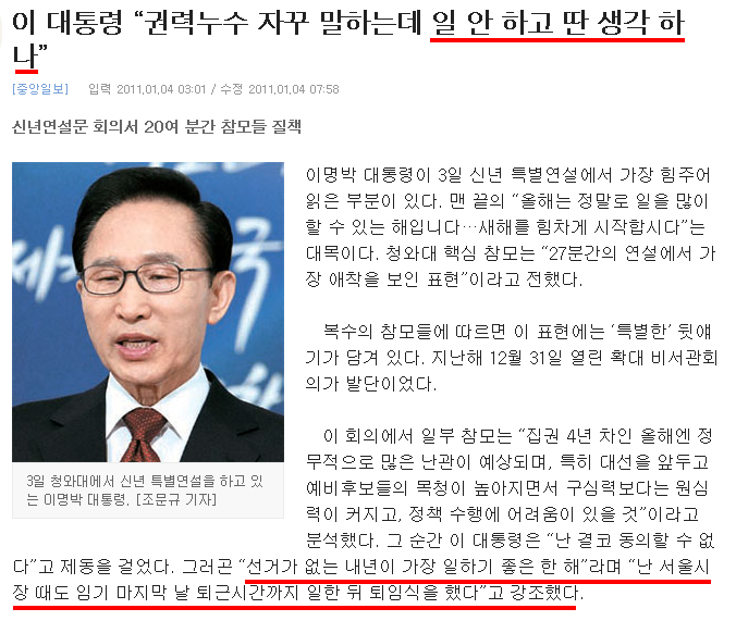 이명박 대통령 임기 마지막해인 2012년 이명박대통령의 통치력이 절정에 이른다.