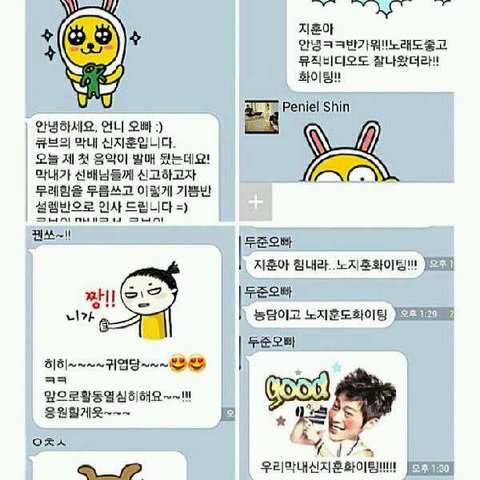 큐브 막내 신지훈양의 음원이 발매된 날 신지훈양이 단톡에 인사를함 ㅇㅊㅅ은 비투비 이창섭 꿘소는 포미닛 소현 현아가 캡쳐해서 인스타그램에 올림 소속사 아티스트들끼리 친하긴하지만 단톡도 있을줄이야.. 처음 큡콘 티져 생각나고 좋네여@.@ㅋㅋㅋㅋㅋㅋㅋㅋㅋㅋ