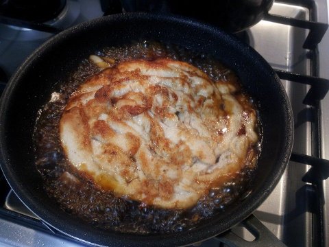 5)한번 잘 끓인 소스에 구운 닭을 넣고 조려줍니다.