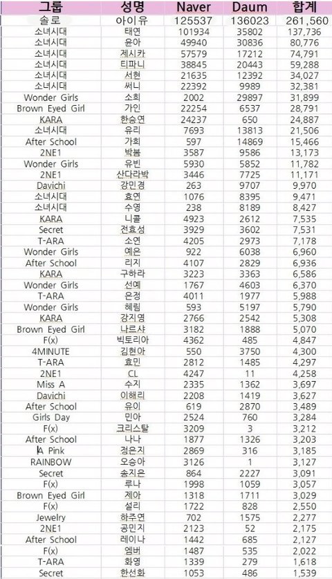 역시 !!소시 대단하당...근데 아이유도 대단하당..아이유 9명 = 2.354.040 ㅋㅋ