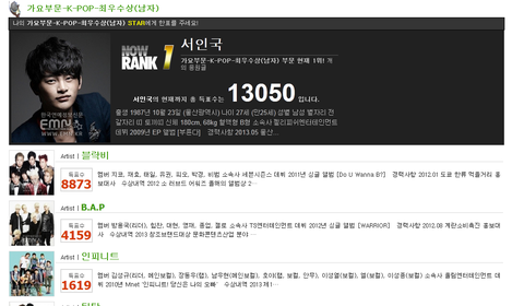 http://awards.emn.kr/news/index.php?tcode=2013star12&qsort=wr_good&qord=desc