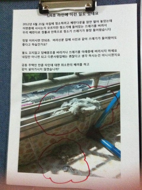 진짜 밑으로 떨어지는게 다 보이는데 윗 집이 버리는 것을 내내 위로 올려다볼 수도 없고 그 쓰레기를 내 얼굴로 다 맞아가며 증거를 포착할 수도 없고