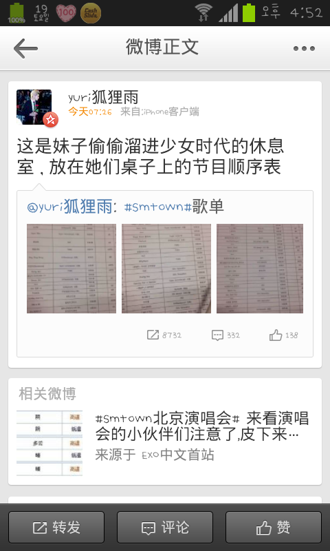 돌아다니는 일정표보고 어떻게 구했지라는 의문으로 웨이보에 들어가봤는데..