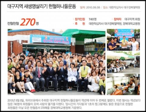헌혈하나둘운동을 통해 생명살리기에 앞장서고 있습니다.