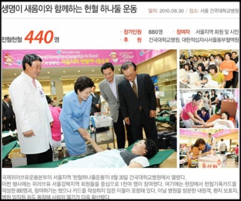 국제WE LOVE U 운동본부(장길자 회장님)의 헌혈하나둘운동이