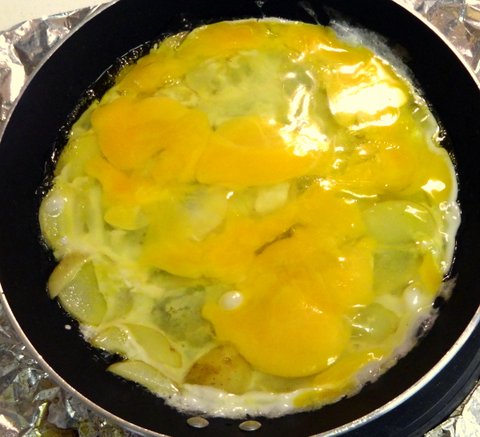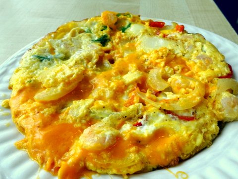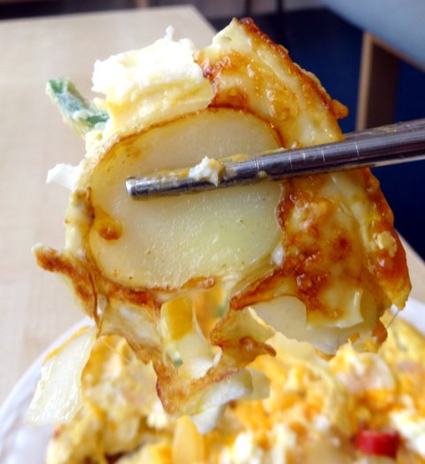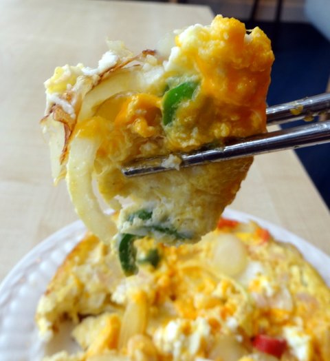 원래 양넘들은 감자깔고 기냥 계란 얹고 후추만 디따 뿌려서 오물렛 으로 먹는게 엄청 느끼합니다. 양파나 마늘, 고추 같은 야채 넣고 칠리 소스 뿌려 먹는게 우리 입맛에는 조금 낫습니다