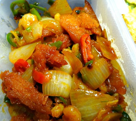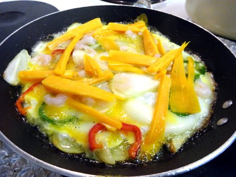 토핑으로 고추와 양파 그리고 조그만 새우 투입