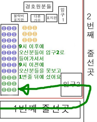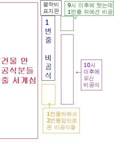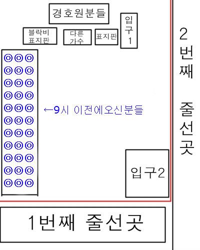 9시 이전에 오신분들(공식+비공식)이 1번째 줄선곳에 서있었습니다