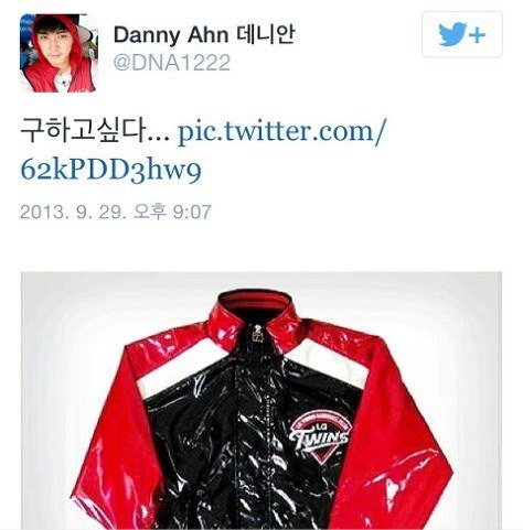 데니안(@DNA1222)은 지난달 29일 트위터를 통해 LG트윈스의 유광잠바 사진을 올리며 “구하고 싶다”는 글을 남겼다.