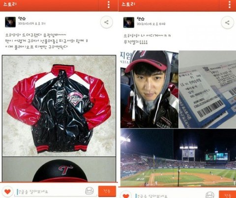 이어 지난 9일에는 카카오스토리에 “드디어 구했다 유광잠바. 팬이 어렵게 구해서 선물해줌. 피규어와 함께. 이제 플레이오프 티켓만 구하면 된다”라는 글과 함께 선물 받은 유광잠바 사진을 게재했다.