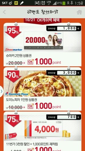 매일 하루하루 다른 OK캐쉬백 제휴 상품 할인권을