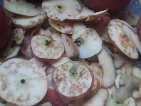 10개 남짓한 사과에서 8개가 저렇고 나머지는 멍들고 찢기고.