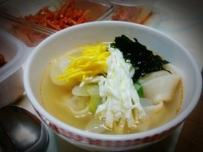 냉장고에서 잠자고 있던 김치만두 꺼내서 만두국