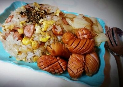 집에 있는 재료로 대충 만들어먹은 비엔나 쏘세지랑 계란넣은 볶음밥