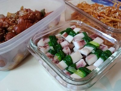 꼬막,오징어채무침,비름나물무침,오징어초무침,어묵볶음