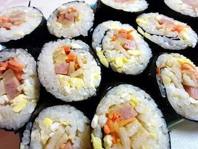 밥 간할때 다 섞어서 만들어 먹은 꼬마김밥ㅋㅋㅋ이힝이힝