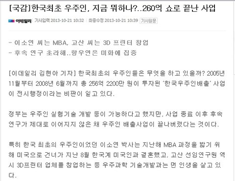그리고 국가에선 '한국 최초의 여성 우주인 ' 이라는 쇼를하자고 우리 돈을 우주에 뿌렸지ㅋㅋㅋ