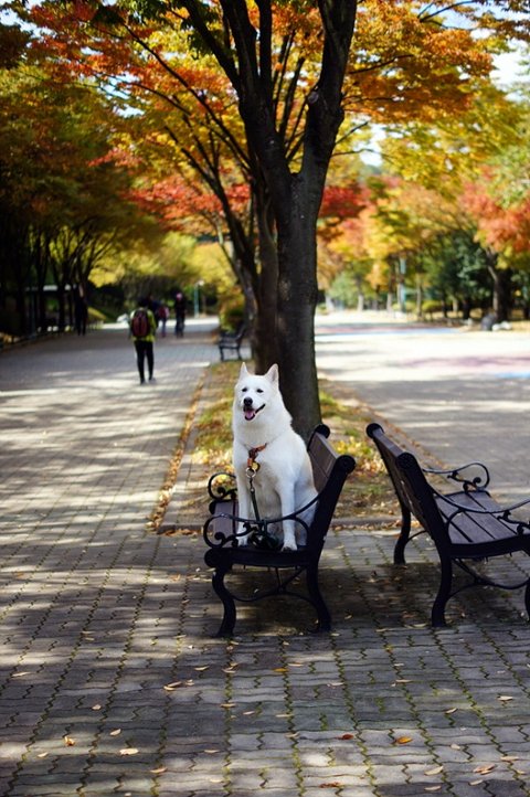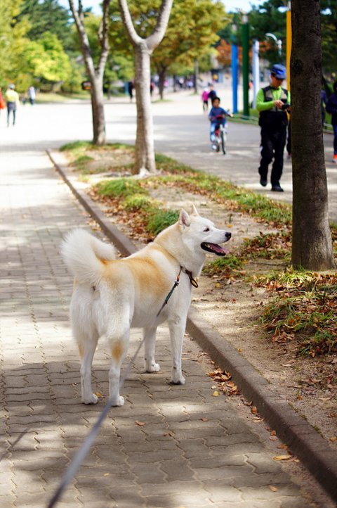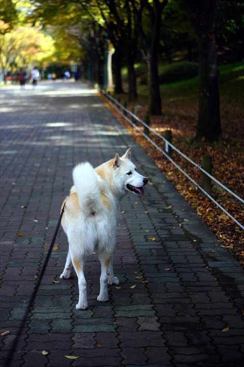 두리번 두리번.. 여기저기 냄새도 맡고..공원 구경중이예요