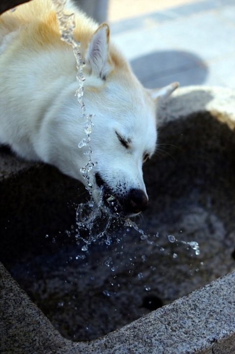 물도 마시고 시원한 바닥에 엎드려서 체온도 내리고.