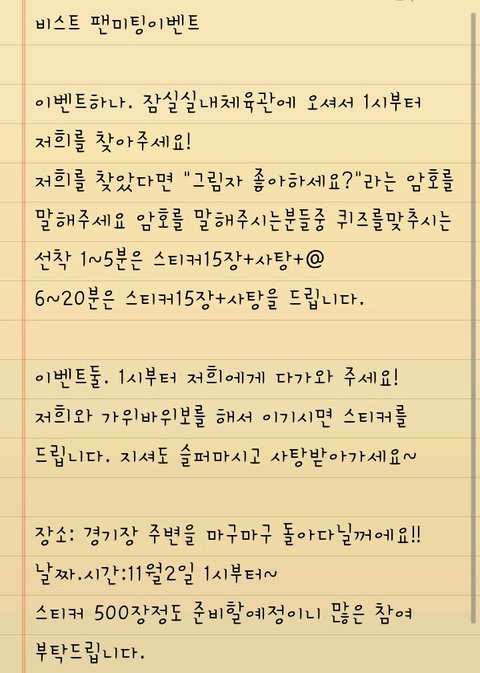 11월2일 팬미팅 당일 작은 이벤트를하려하는데
