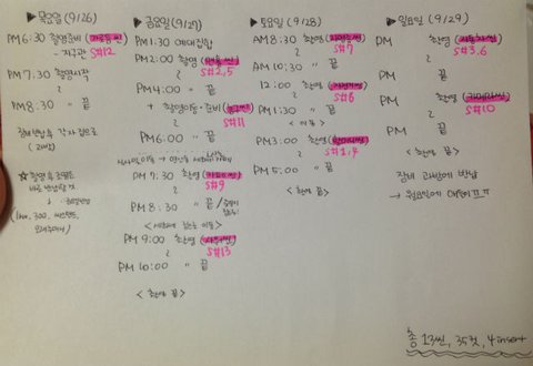워낙 장소도 다양하고 나오는 사람도 많다보니 여간 힘든 게 아니었네용 ㅜㅜ