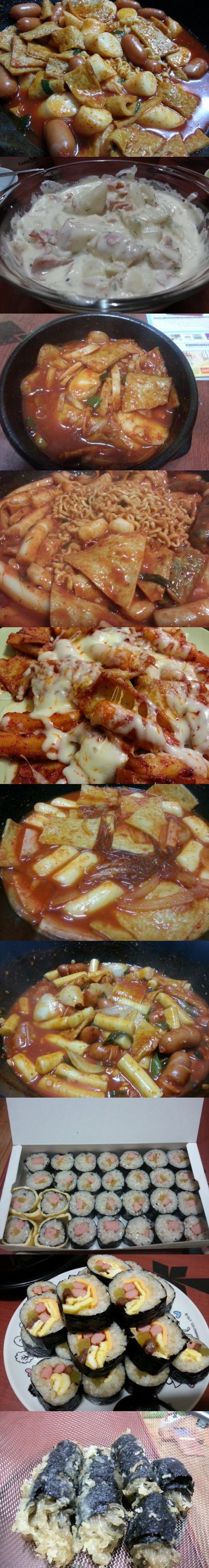 당면 넣은 떡볶이 뚝배기 떡볶이 까르보나라 떡볶이 기름 떡볶이 등등!