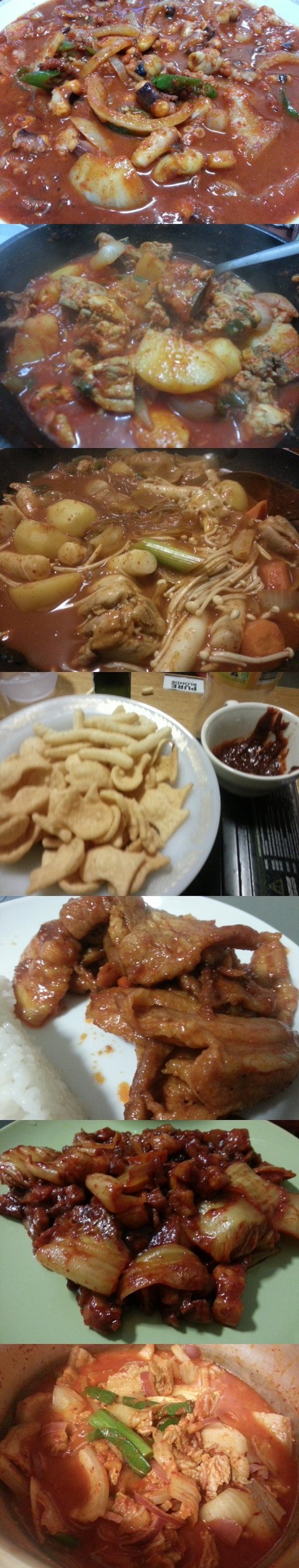 낙지볶음 닭볶음탕 닭볶음탕 만들어주고 후식 안주로 받은 과자와 고추장 ㅋㅋㅋㅋ