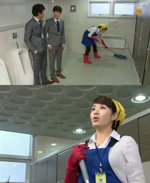 남자화장실, 청소아줌마 서스럼 없이 들어오고