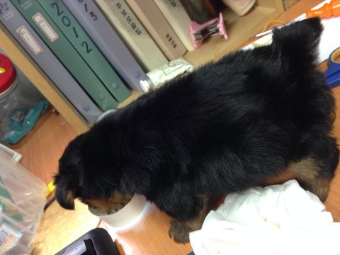 한숨 거하게 자고 일어나 배고픈지 낑낑거리더군요. 병원에 유기농 사료가 없어서 인터넷으로 주문하고 급한데로 우유를 데워줬더니 종이컵을 뚫을 기세로 먹어대더라구요.. 저 배를 어쩔껴?