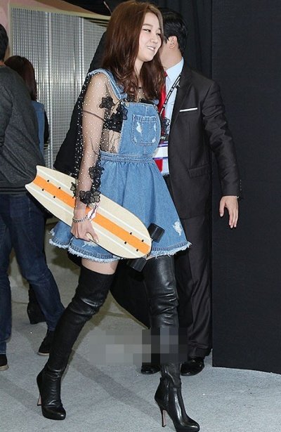 레알 씨스루 블라우스랑 저 힐 신고는 올라가지도 못 할 것 같은 보드까지...