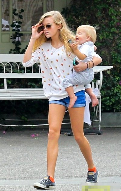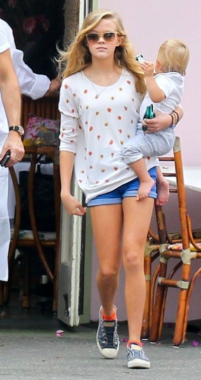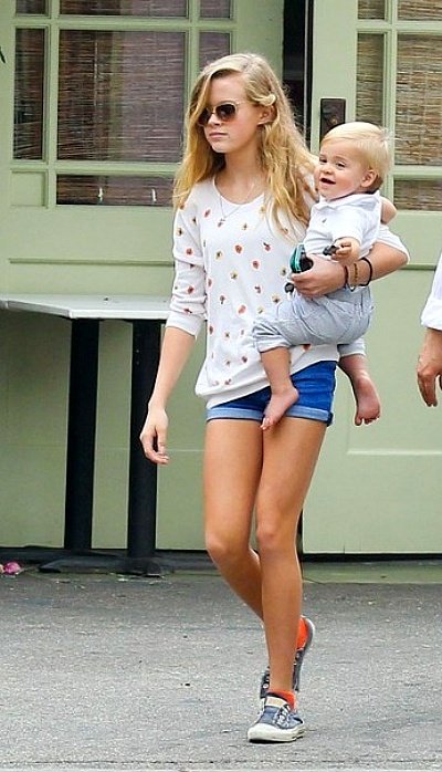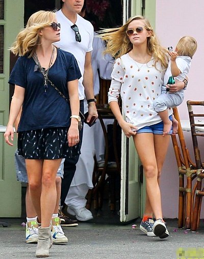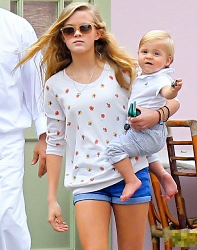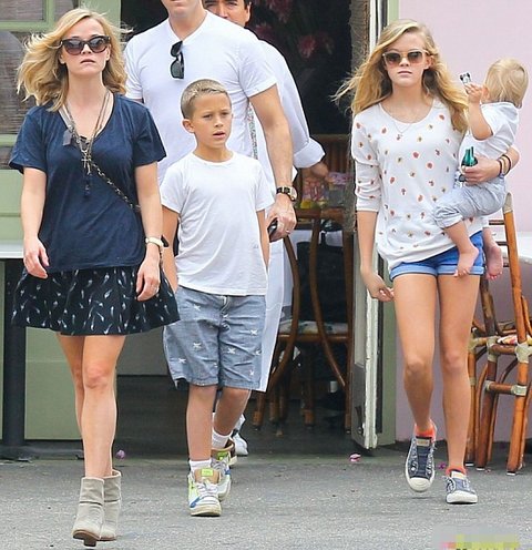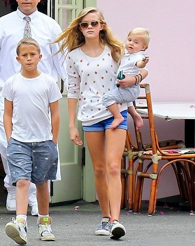 엄마 리즈 위더스푼과 늦둥이 막내동생, 남동생과 함께 외출한 에바 필립