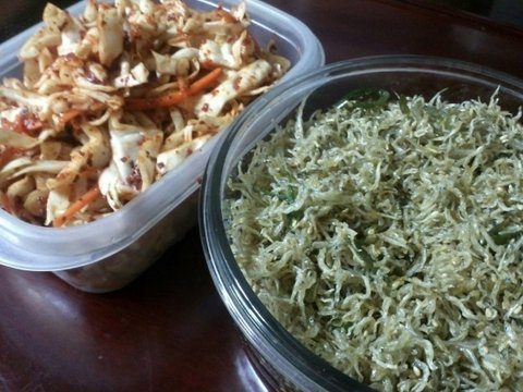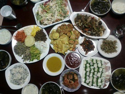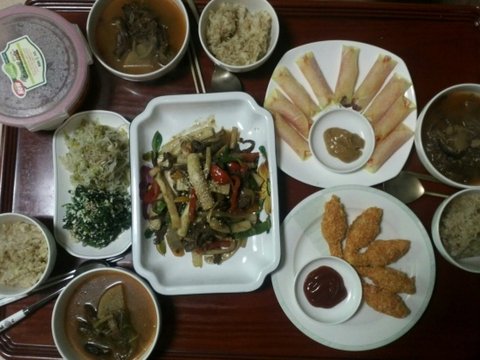 떡잡채, 무쌈말이, 육개장, 나물 무침, 인스턴트 게살튀김