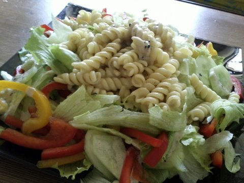 샐러드 파스타. 참깨 드레싱으로 맛을 냈는데..정말 맛없어 보이네요...ㅋㅋㅋ