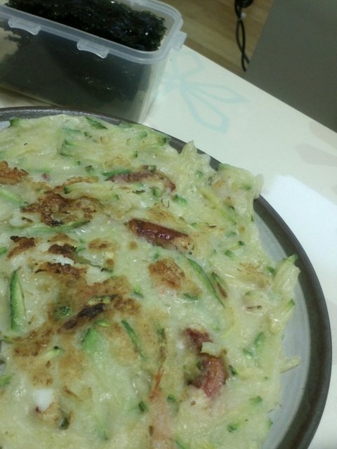 오징어 애호박 전이네요. 동글동글 호박전도 맛있지만 저렇게 해먹어도 맛있어요.ㅎ