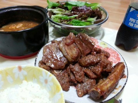 양념갈비 구워서 된장찌개랑 먹었어요.ㅎ