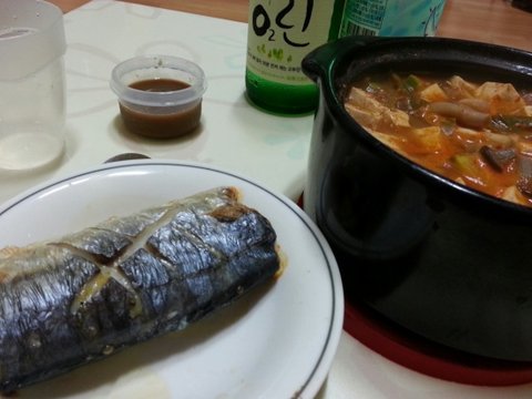 된장찌개랑 오븐에 생선구워서 냠냠...