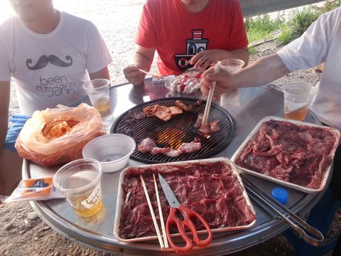 베프가 대부도에서 민박,노래방,슈퍼,조개구이집 하거든요~거기가서 고기주고 방하나 받고ㅎㅎ