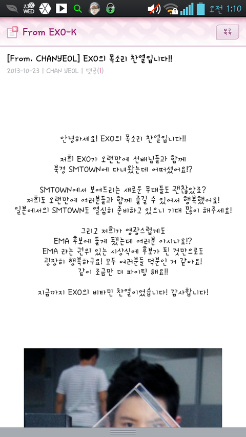 음성지원안된다 찬열이쓴글아니야ㅜㅜ