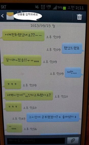 저혼자 다시보기를 다 보다가 끝났기에 자려다가 핸드폰 문자를 한번 열어 봤습니다.
