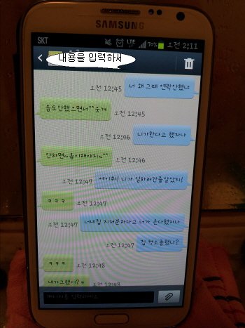 일어나 보라 하고 문자를 보여주니 급하게 지웁니다.