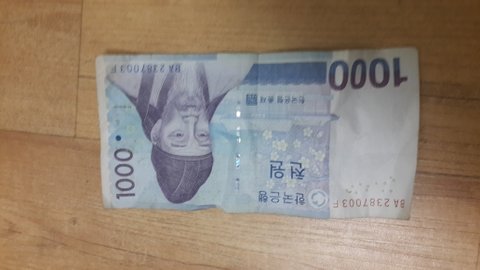 천원을 바지에 구겨넣어서 좀 구겨진 그때 그 천원