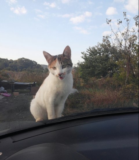 냥이가 화났는지 갑자기 점프를 팍 하더니 차 본네트 앞에 올라왔네요ㅡㅡ;;