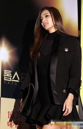 머리부터 발끝까지 올블랙으로 깔맞춘 한채영!