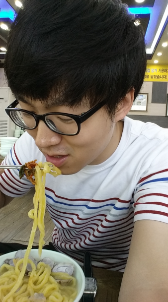 맛있는 바지락 칼국수 섭취에 즐거워 광대가 승천한 친구1