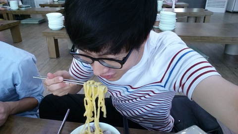넘치는 양에 아직도 칼국수 섭취에 여념 없는 친구1