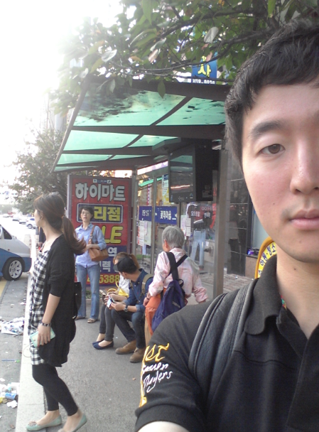 걸으면서 소화시키며 버스를 기다리는 친구2 !