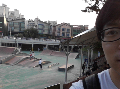 X-Sports 연습장에 앉아 구경하며 상상의 나래를 펴는 친구1