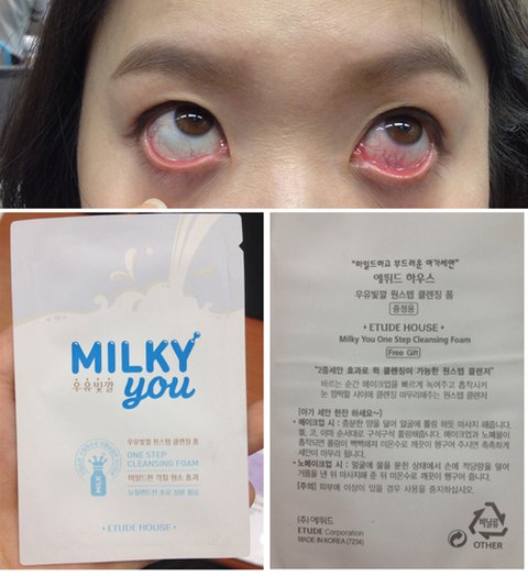 에뛰드 '우유빛깔원스텝클렌징폼' 사용하다 헹구면서 눈에 들어가면,