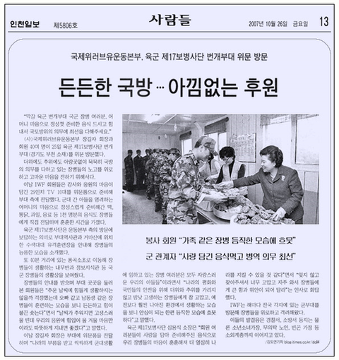 그래서 나라를 위해 고생하시는 군인들을 위해 장길자회장님과 국제위러브유운동본부회원들이