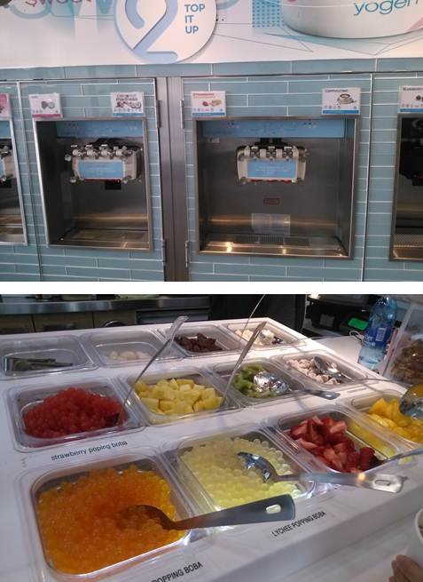 저는 요거트랑 초코아이스크림을 셀프로 먹고 싶은만큼 덜어서,